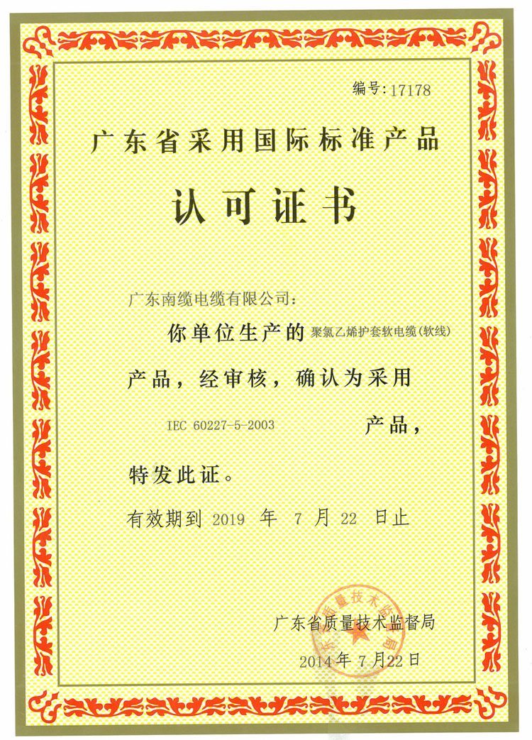 廣東省采用國(guó)標(biāo)標(biāo)準(zhǔn)產(chǎn)品認(rèn)可證書(shū)
