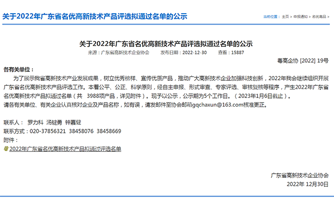 “廣東省名優(yōu)高新技術(shù)產(chǎn)品”評選是在過去高新技術(shù)產(chǎn)品評選基礎(chǔ)上的延續(xù)和進一步升級,對高技術(shù)、高質(zhì)量、市場前景有更高要求,評選的產(chǎn)品具備達到國內(nèi)先進水平等特征,認(rèn)定門檻高、難度大、含金量高,是企業(yè)核心競爭力的體現(xiàn)。