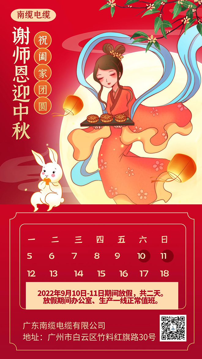 值此中秋佳節(jié)之際,廣東南纜電纜有限公司全體人員祝所有客戶朋友們、供應(yīng)商伙伴們:節(jié)日快樂、工作順利、闔家幸福。向一直以來支持南纜電纜工作的家人們致以節(jié)日最美好的祝愿。